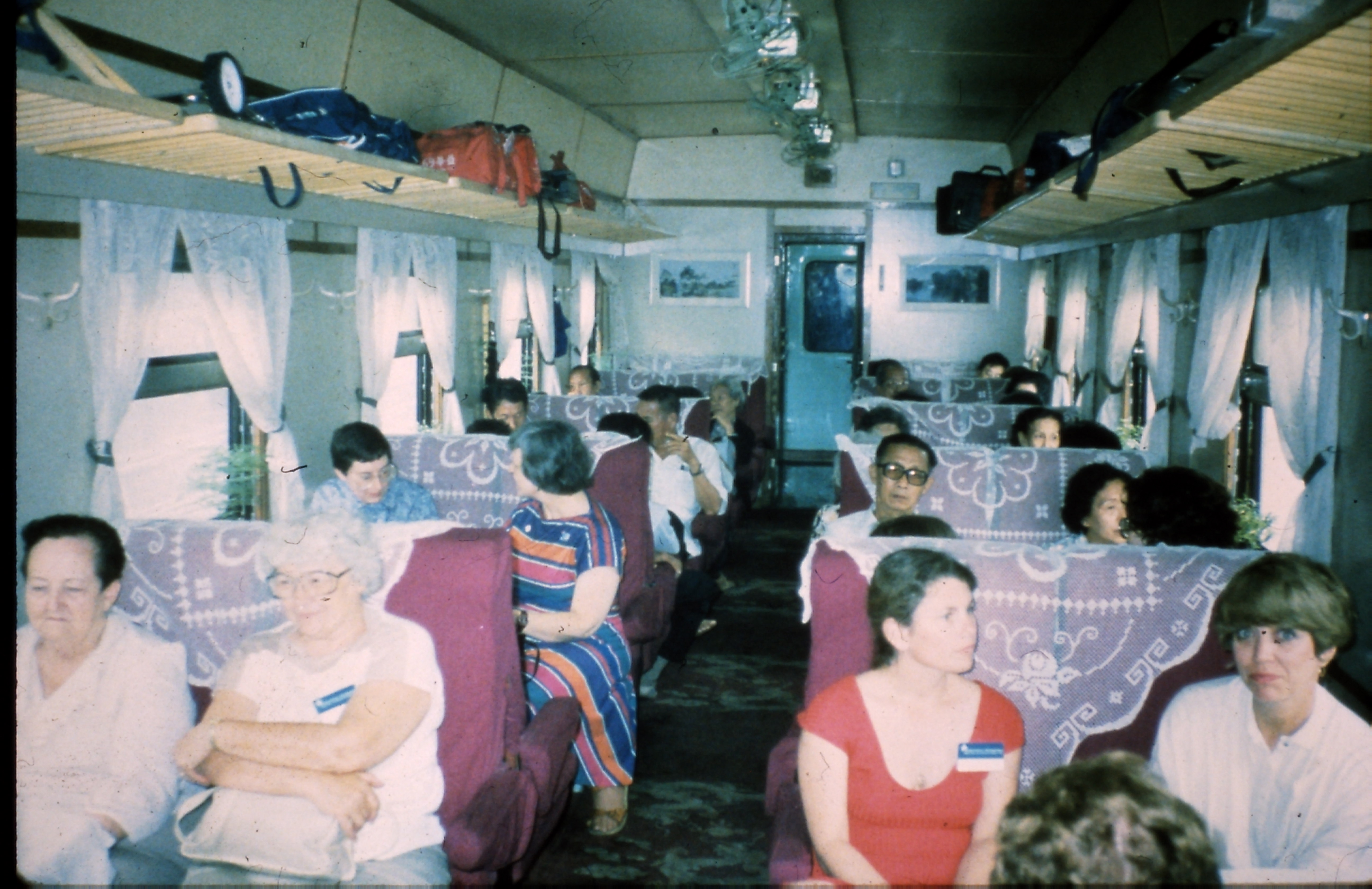 The train was so interesting with 2 seats facing each other with a small lace-covered table between us with a potted plant in the middle. There was carpet on the floor and overhead ceiling fans which made it very comfortable. We again enjoyed tea served by the stewardess.