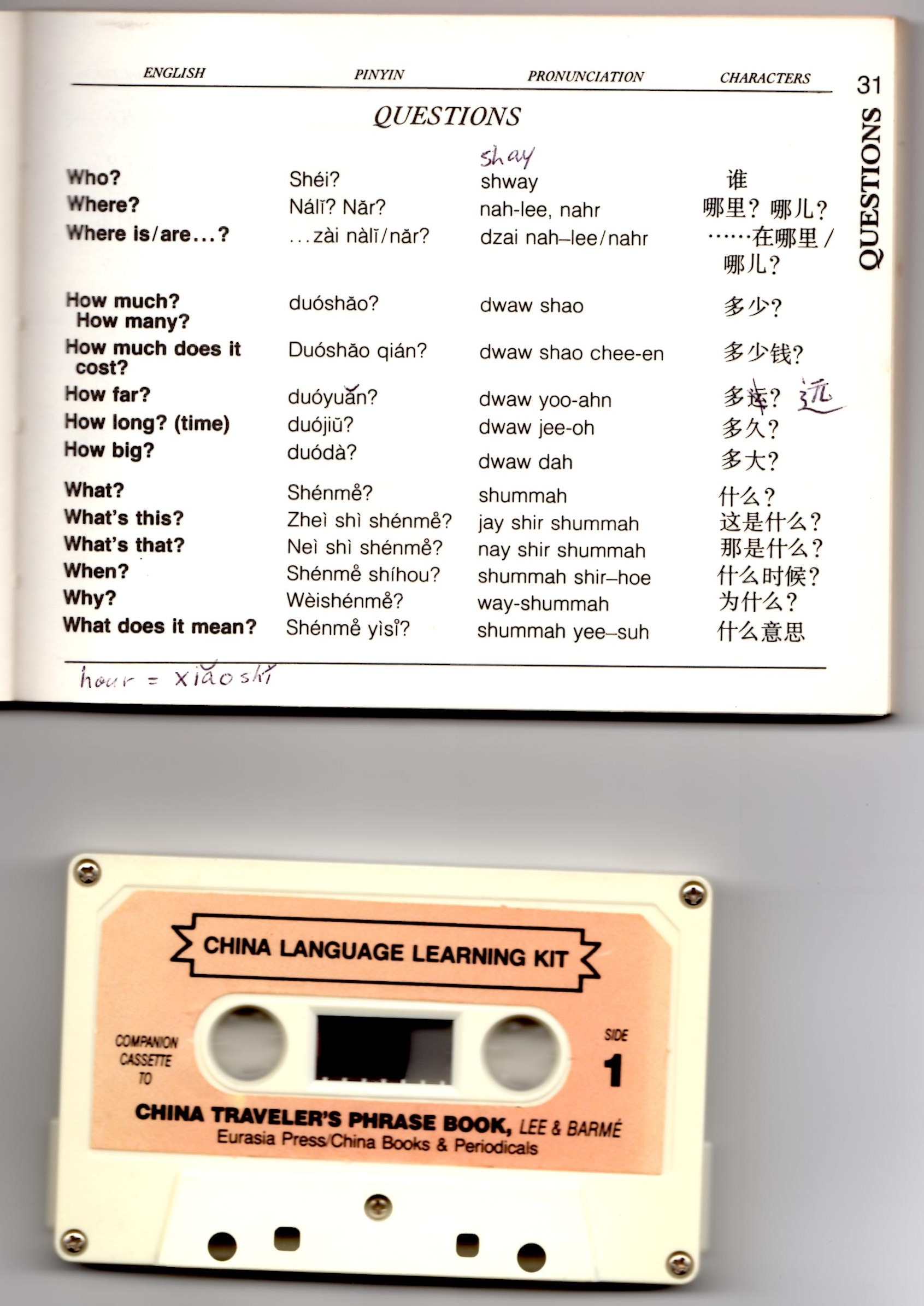 I learned there are four tones in Mandarin Chinese which is what they speak in mainland China where I’m going. (They speak Cantonese in Hong Kong and Taiwan.) The word has a totally different meaning depending on the tone you use. I think my music background helps. Mr. S. said I’m making good progress, but I feel like I’m going about the speed of a turtle. I’m not even attempting to learn how to read or write the characters since I only have five months before I leave. I’m glad they use the Pinyin system which uses the 26 English letters to write out the Chinese words like they sound.