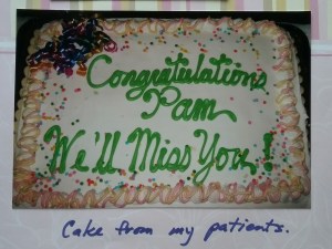 My patients gave me a lovely cake and the nurses gave me a gorgeous bouquet of roses at the farewell concert and party. My tears fell as I hugged everyone goodbye and packed up my office. Onward and forward.